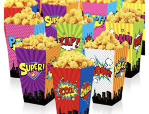 Food ($150.50): We went super simple! We got 3 extra large pizzas, delivered directly to the park, I bought a giant bag of popcorn to fill the themed boxes, a giant box of individual packs of fruit snacks, 48 juice boxes, 24 seltzer waters and 24 water bottles (for the adults). Then, as part of the theme, I ordered Flash cupcake picks and just ordered 3 dozen standard cupcakes from Publix with white frosting and yellow and red sprinkles. We even ended up taking home a lot of leftovers!