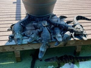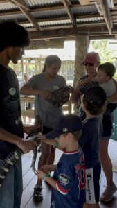 Now, the highlight for the boys (and maybe a sneaky thrill for Papi and myself) was the Gator Jumparoo show. Picture this: a trainer dangling fish on a string like a fisherman, only instead of a leaping trout, a colossal gator lunges out of the water, snapping its jaws inches from the string. It was heart-stopping, awe-inspiring, and completely captivating for the boys. Plus, there was a pond of smaller gators so you could even buy some fish and use sting to feed the little guys just like the show!