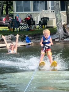 The evenings were spent roasting marshmallows over the fire, telling stories, and playing board games. And the days were a whirlwind of activity. Mornings started with pancakes on the flat top grill and a mad dash to the lake for some early morning fishing. The boys spent hours exploring the woods, swimming, and catching all kinds of creepy crawlies like crayfish and frogs. Papi was in his element, teaching them how to fish and kayak. Three of the five boys were up on waterskies this year! And for the first time ever, productivity wasn’t the point of this trip. Both Luis and I were completely off from work during our vacation. It was about being fully present with my family and soaking up every moment.